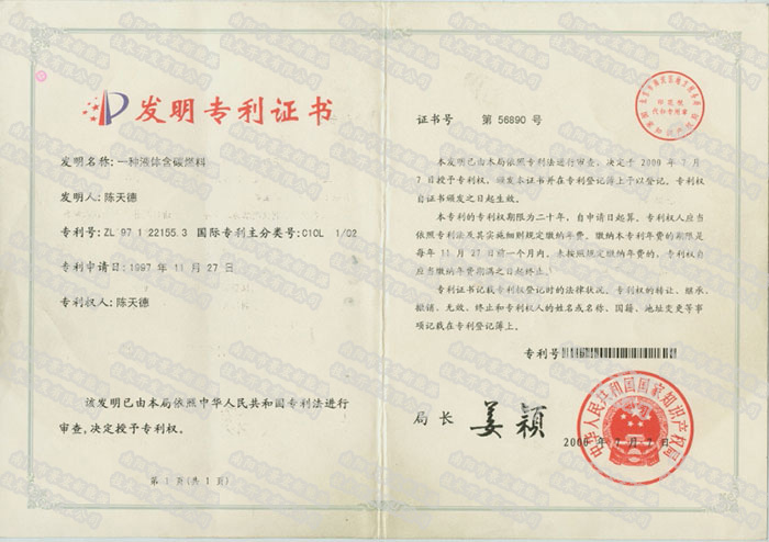 原有添加劑技術屬我公司董事長陳天德獨有國家發明專利技術,專利號ZL971221553 ,由于產品技術優化升級,新的專利正在申報中,故此老專利停止續費,不在保留。